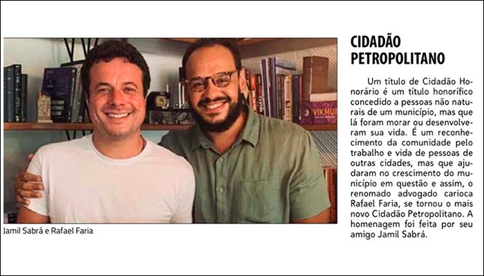 Rafael Faria recebe título de cidadão honorário Petropolitano
